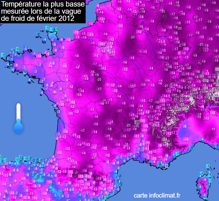 Température minimale mesurée lors de la vague de froid de février 2012 - infoclimat.fr
