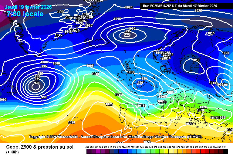 Prévision de l'évolution des anticyclones et dépressions sur l'Europe du jeudi 16 au lundi 23 février 2026 – Modèle européen via Meteociel