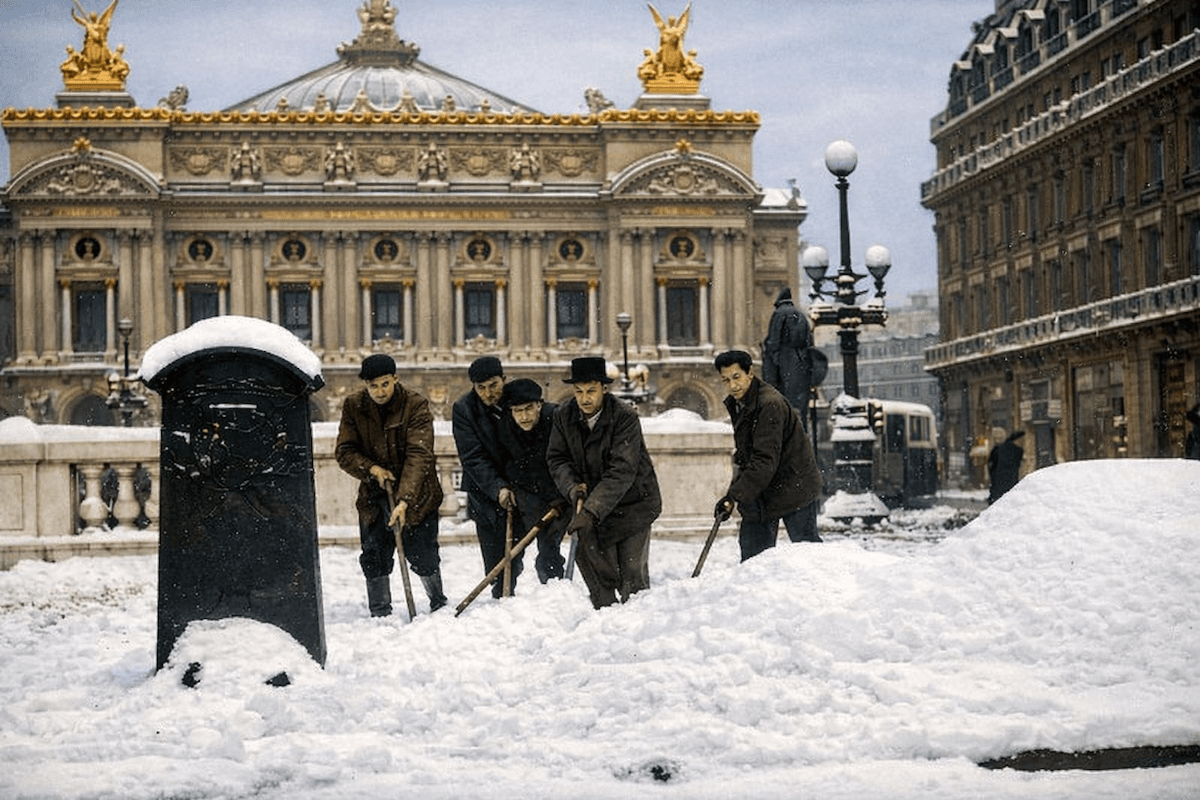 Neige à Paris - Place de l'Opéra - fin février 1948 - archives meteo-paris.com