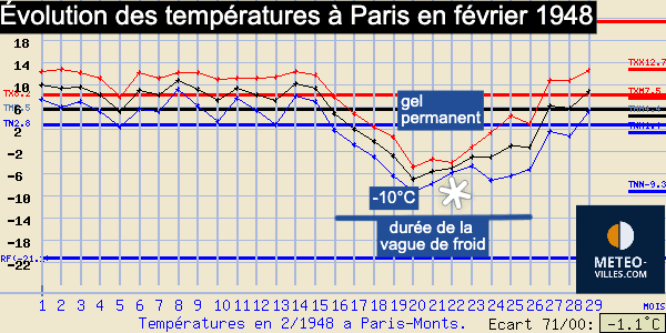Évolution des températures à Paris au cours du mois de février 1948 - source : site meteo-climat