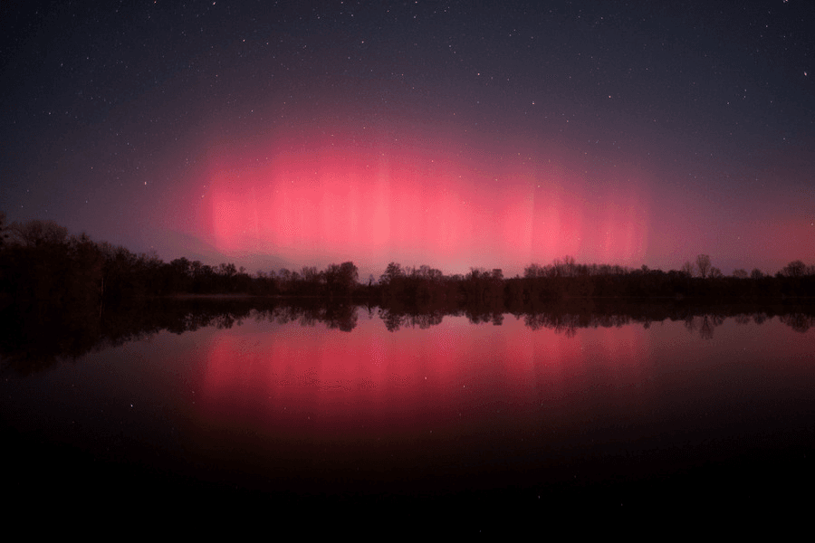 Dans l'est, où le ciel était souvent bien dégagé, les conditions d'observation de ces aurores boréales étaient idéales. La photo ci-dessous a été prise dans le département de la Côte-d'Or aux alentours de 3 heures du matin, au moment où le pic d'activité a débuté. Notons que ces clichés sont réalisés avec un temps de pose de plusieurs secondes, ce qui permet de faire ressortir la lumière et les couleurs. À l'œil nu, celles-ci sont bien plus faibles mais plusieurs observateurs ont signalé qu'elles étaient tout de même perceptibles.