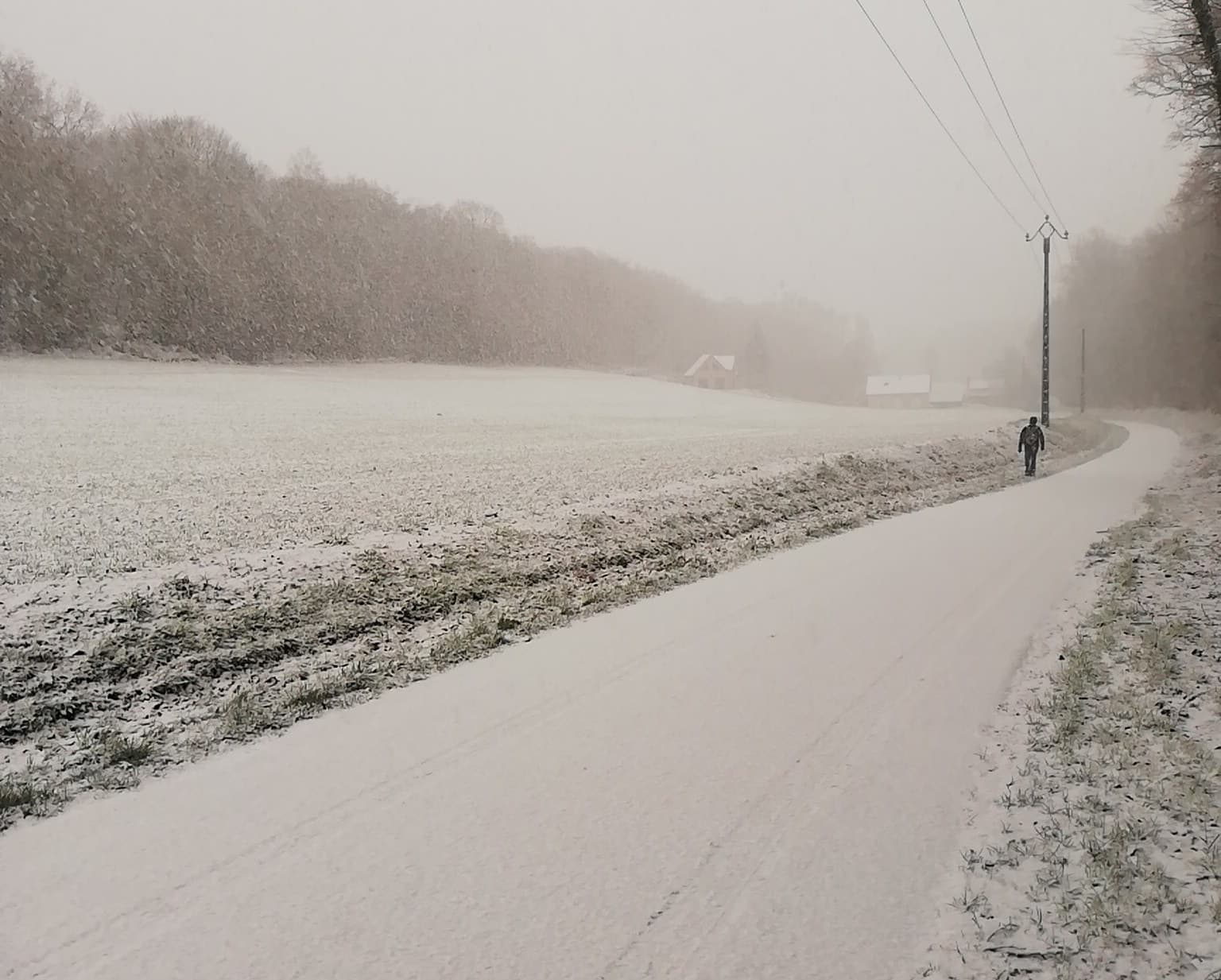 Saupoudrage neigeux temporaire à Canneppeville (27) le samedi 23 janvier – Photographie F. Brumard via Les Forums d’Infoclimat
