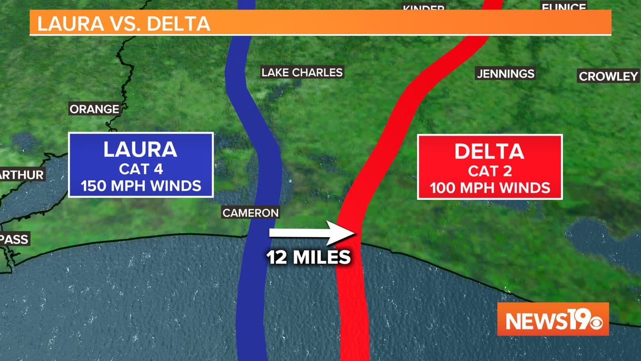 Représentation cartographique des deux ouragans puissants ayant frappé la Louisiane depuis fin août 2020 - Danielle Miller - News 19 WLTX