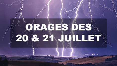 Cumuls maximums en 24 heures du 20 juillet 17h au 21 juillet 17h ;