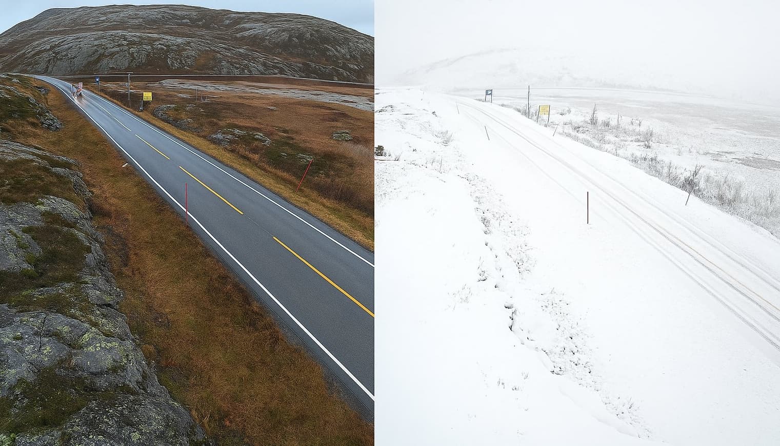 Du côté de la Scandinavie, c'est notamment sur les reliefs que l'hiver s'installe véritablement en cette période de l'année. Sur les reliefs non loin de Skibotn, le changement fut radical entre le début du mois et ce 17 octobre.