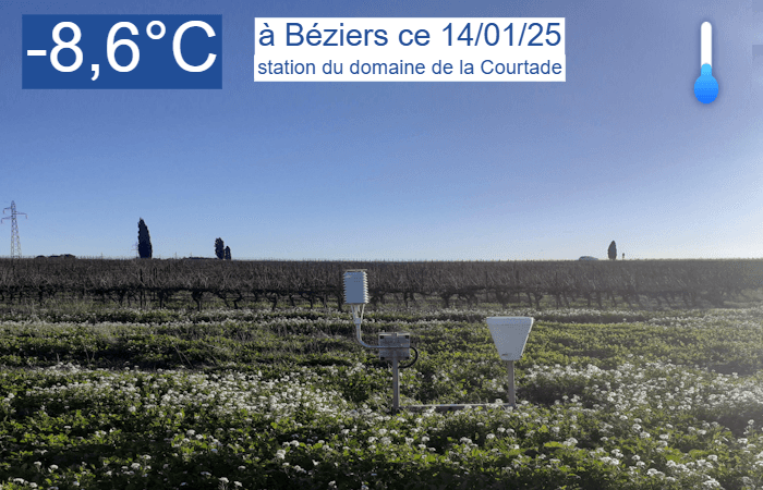 -8,6°C mesurés à Béziers-Courtade (34) ce mardi 14 janvier 2025 - Météo France