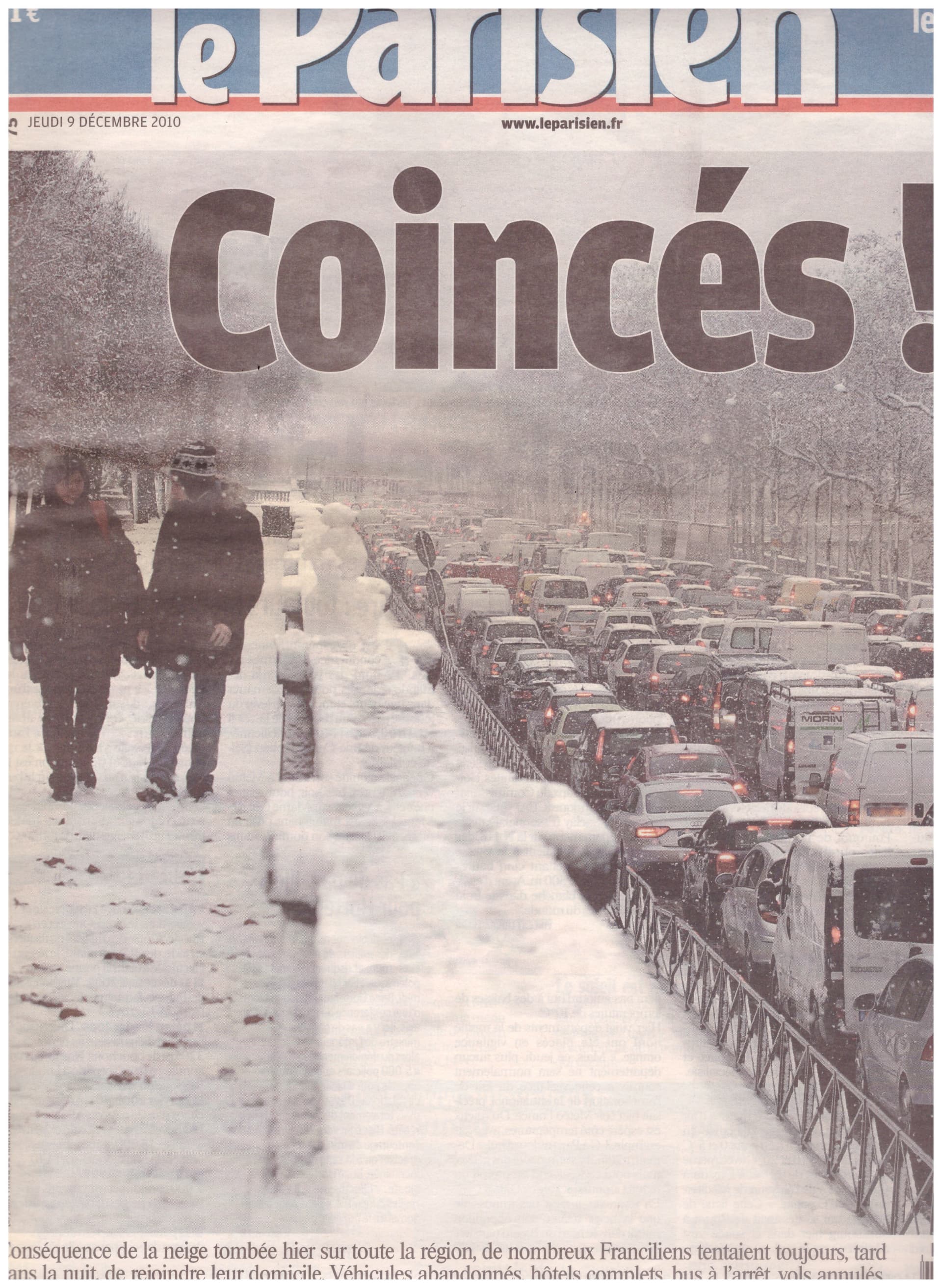 Article du journal le Parisien du 9 décembre 2010 relatant de cet épisode neigeux - Météo-Villes