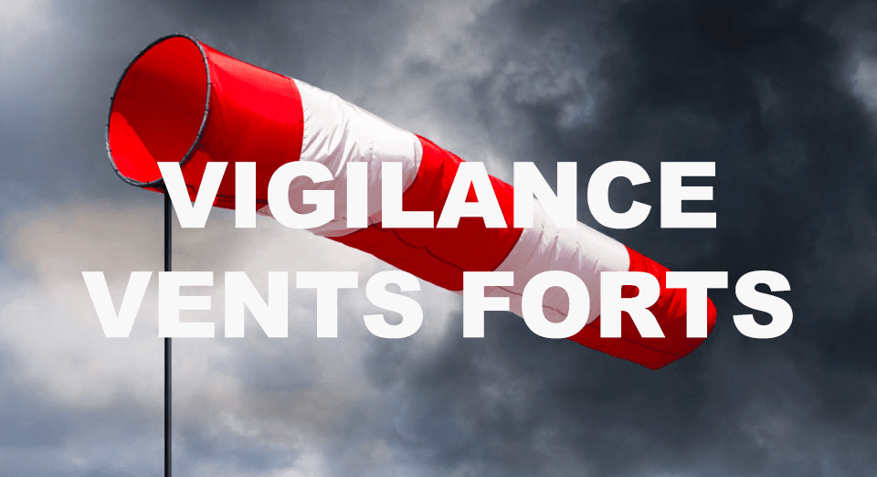 Les vents les plus forts se décaleront en soirée puis dans la nuit plus à l'Est, touchant dès lors plusieurs secteur :