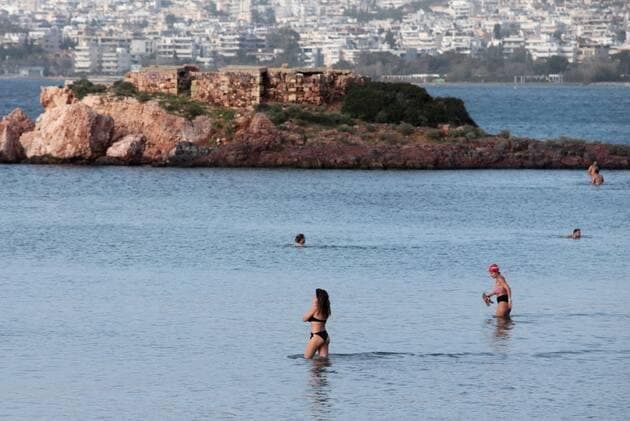 Des baigneurs près d'Athènes en Grèce le dimanche 10 janvier 2021 - photo Pantelis Saitas