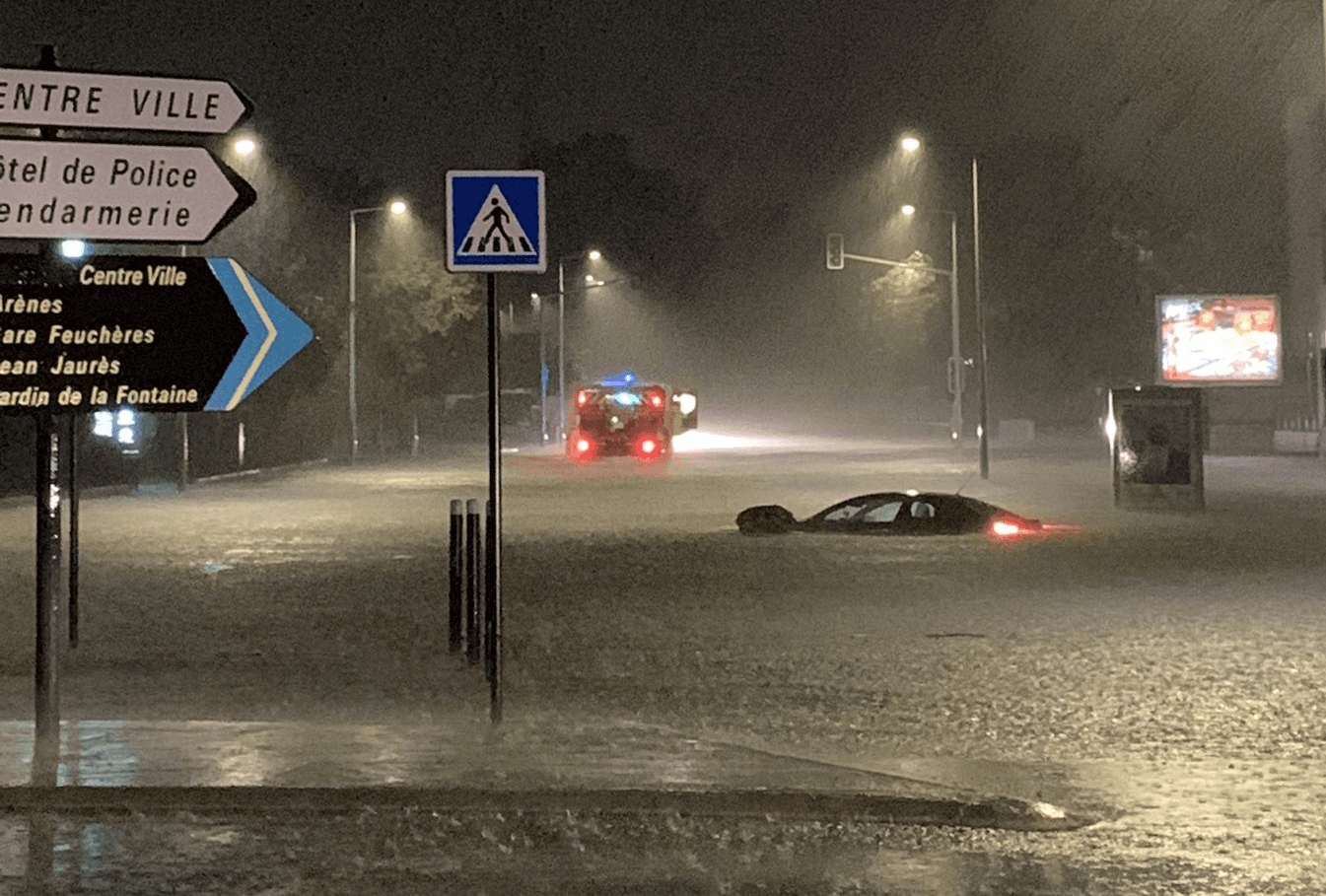 Nîmes inondée dans la nuit du mardi 6 au mercredi 7 septembre 2022 - via @RaphBtd75