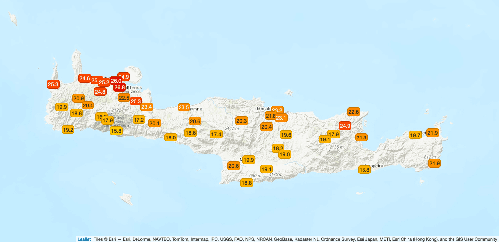 Température maximale observée le 09 janvier 2021 en Crète (Grèce) - Réseau MeteoNetwork