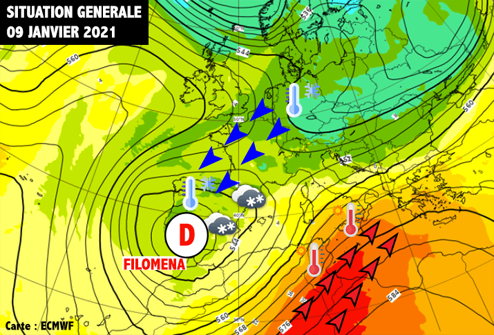 Situation générale au 09 janvier 2021 - fond de carte ECMWF