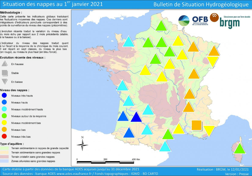Situation des nappes phréatiques au 1er janvier 2021 - BRGM