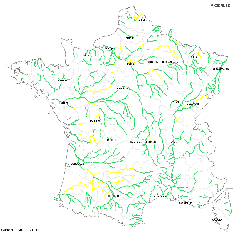 Niveau de vigilance des cours d'eau au 24 janvier 2021 - Vigicrues