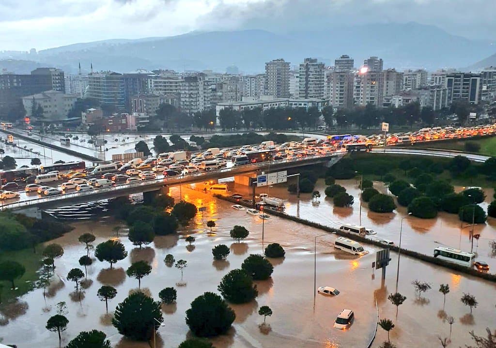 Izmir après les pluies torrentielles, où la circulation est totalement bloquée en pleine heure de pointe.