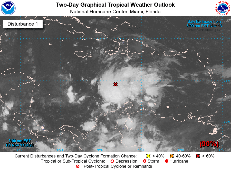 Potentiel de formation d'une nouvelle tempête tropicale (la 31ème de la saison, du jamais vu) dans les prochaines 48h - Via nhc.noaa.gov