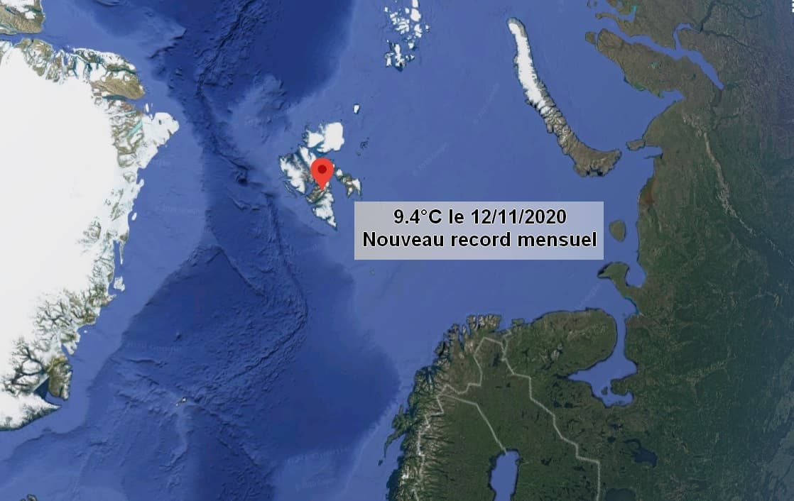 Nouveau record mensuel de température maximale sur l'archipel de Svalbard ce 12 Novembre - Météo-Villes via Google Earth