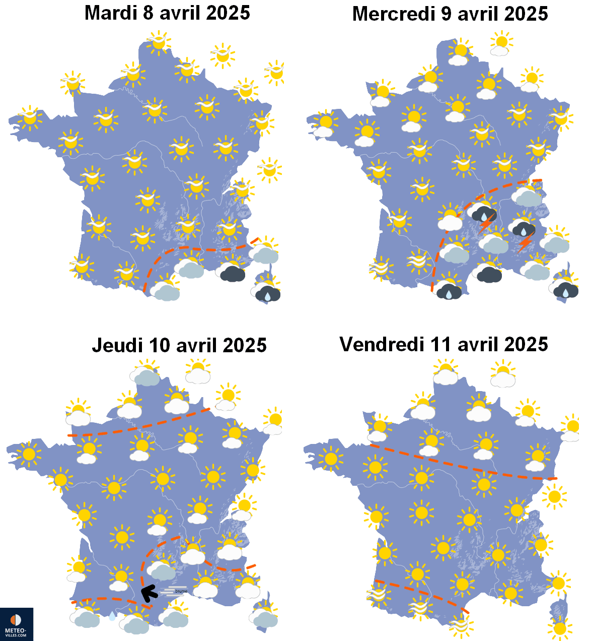 Temps sensible attendu sur la France du 8 au 11 avril 2025 – Météo-Villes