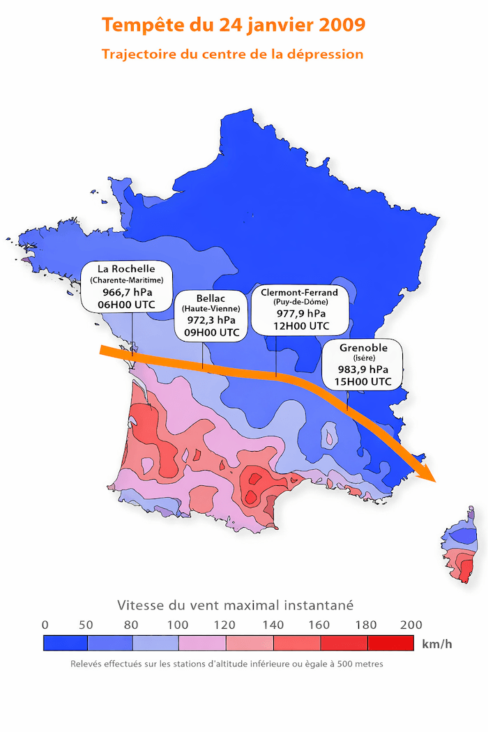 Dix ans après la tempête Martin qui a frappé le sud-ouest de la France à la fin du mois de décembre 1999, la tempête Klaus, qui a ravagé la région le 24 janvier 2009, a été presque aussi puissante.  Elle figure parmi les tempêtes les plus dévastatrices que la France ait connues ces dernières années.