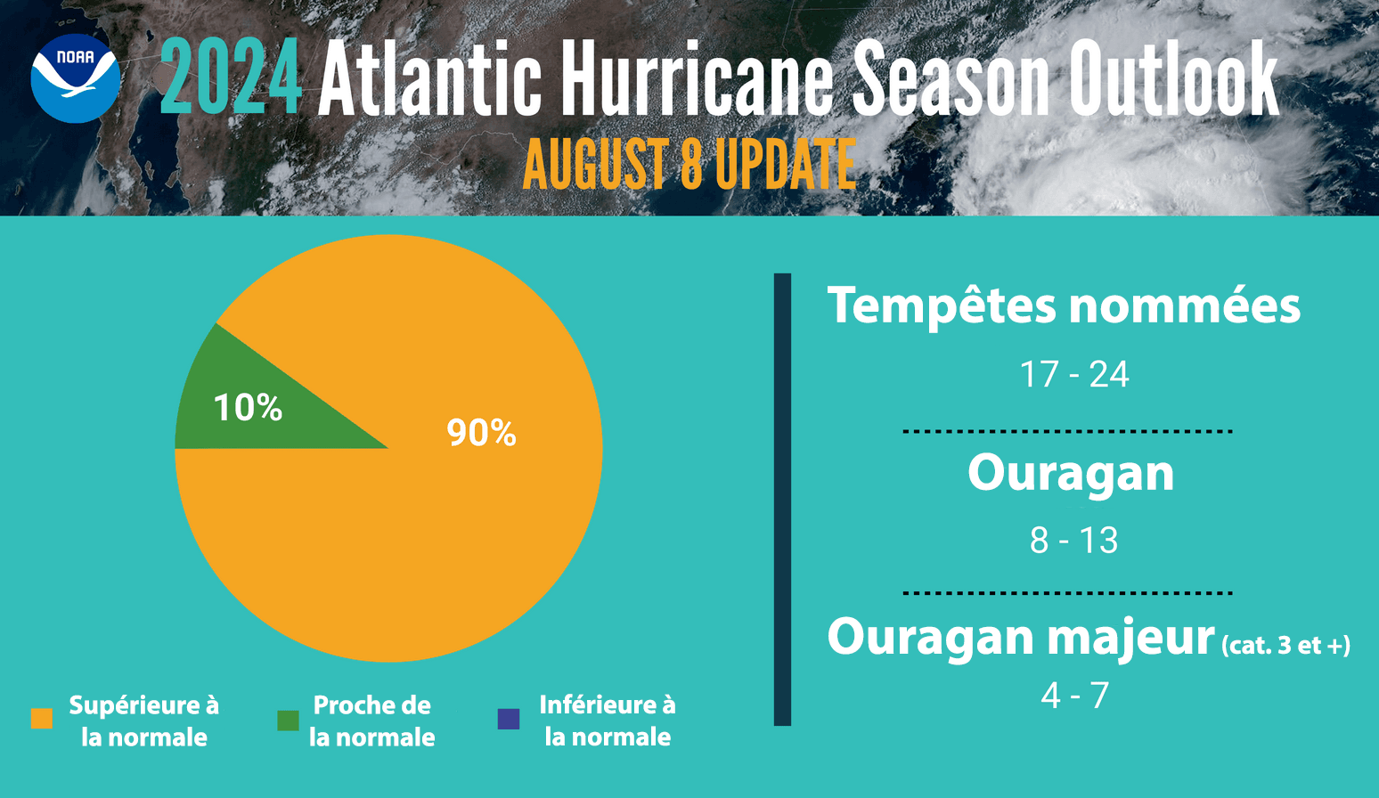 Prévisions initiales de l'activité de la saison des ouragans sur l'Atlantique Nord en 2024 (au 8 août) - NOAA - NHC