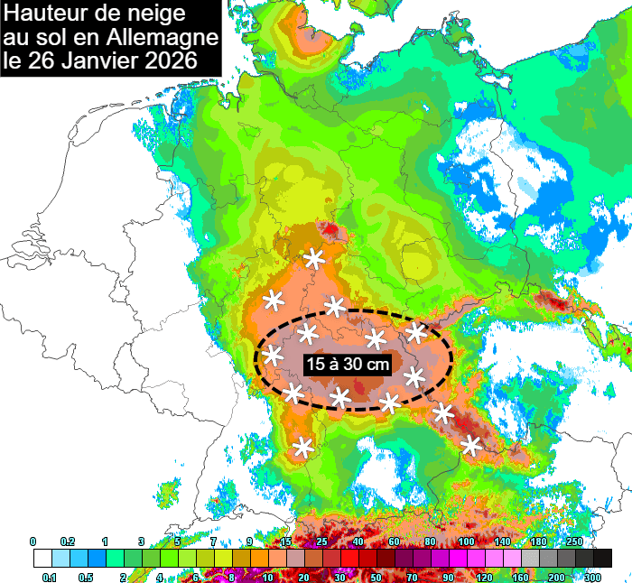 Cumul de neige au sol en Allemagne ce lundi 26 janvier 2026 - meteociel.fr