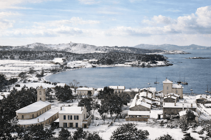 La neige ne se contente pas du littoral varois. Elle s'invite également sur les îles du département ! Ainsi, l'île de Porquerolles se retrouve sous plusieurs centimètres de neige en cette fin février 1909. La photo ci-dessous - qui est un cliché d'époque ayant été amélioré et colorisé - en témoigne. De nos jours, voir de la neige recouvrir les îles varoises est devenu particulièrement rare, y compris au cœur de l'hiver.