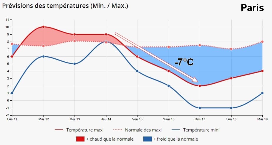 Si ce redoux devrait se montrer sensible, il n’en restera pas moins très temporaire. Dès Vendredi le flux devrait devenir de plus en plus continental avec une dépression circulant sur le Nord du pays et advectant un air plus froid venu d’Europe de l’Est.