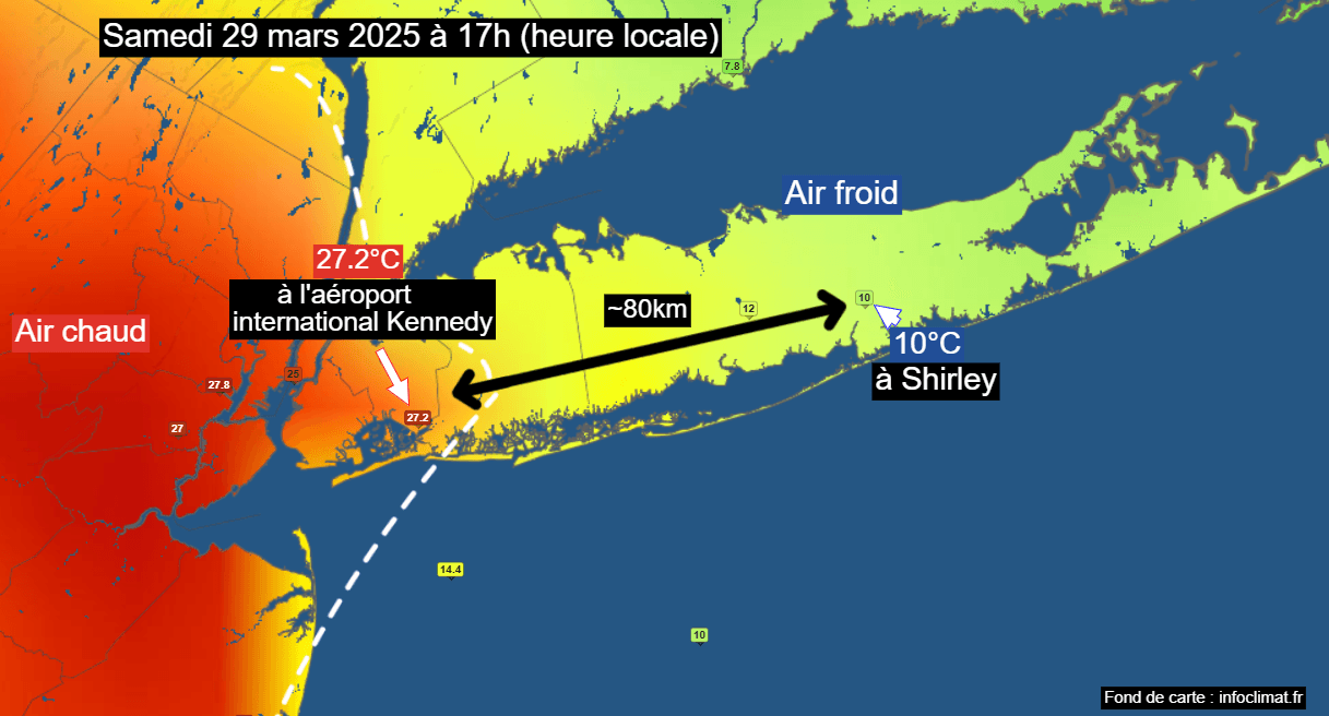 Exceptionnel gradient thermique sur Long Island le 29 mars 2025 – via Infoclimat.fr