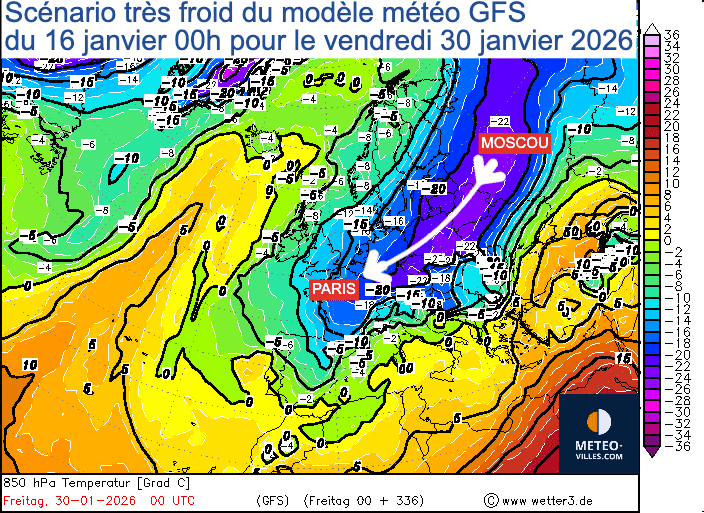 Exemple d'un scénario très froid pour la fin du mois de janvier 2026 en France – Via Wetterzentrale