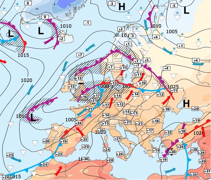 + Vendredi, de l'air plus frais envahira le pays par l'Ouest, repoussant la perturbation vers les régions de l'Est.