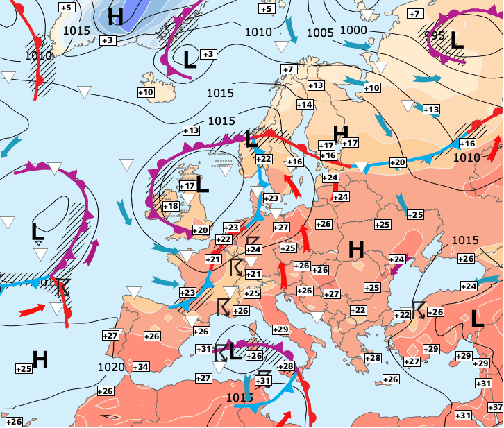 + La dépression britannique Quillan (responsable des fréquentes averses de ces derniers jours) va peu à peu se décaler vers la Norvège.